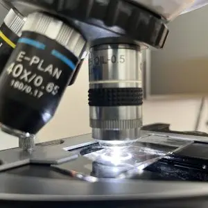 Dieses Mikroskop zählt zu den Lichtmikroskopen, deren Vorteil (im Gegensatz zu Elektronenmikroskopen) darin besteht, dass sie die Betrachtung lebender Zellen ermöglichen.